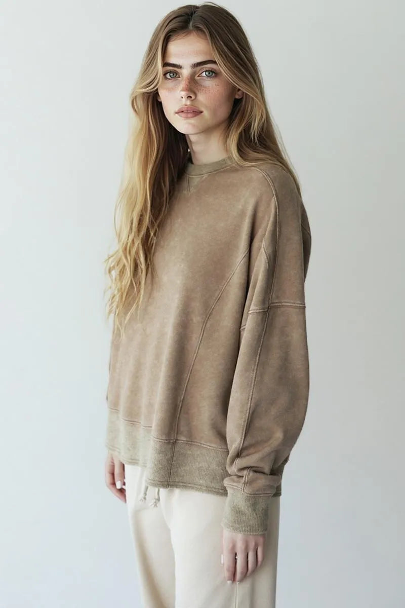 Buzo con corte suelto, liso, cuello a la base.